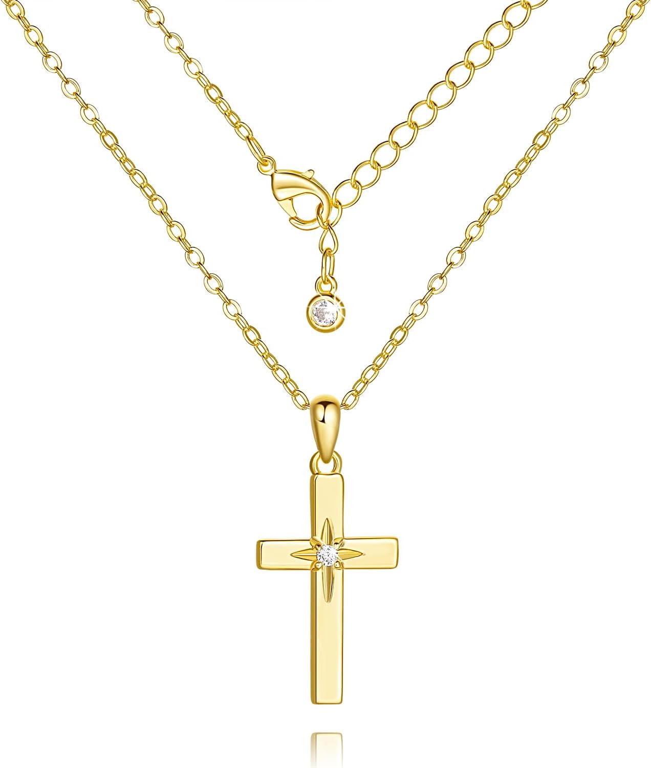 ENROSE Cross Necklace 14K Gold Cross Necklaces for Women with Cubic Zirconia Wearable Lucky Charm Gold Crosses Chain Pendant for Women