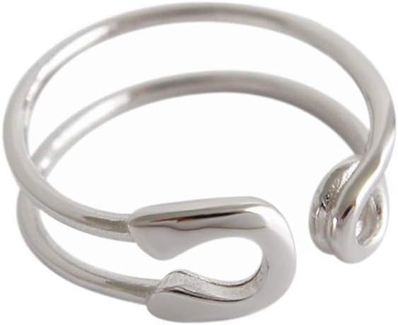 Hebelee Minimalist Open Band Ring for Women Girls 925 Sterling Silver Expandable Statement Stackable Paperclip Safety Pin Toe Knuckle Eternity Rings Fashion Dainty Cute Mother's Day Jewelry