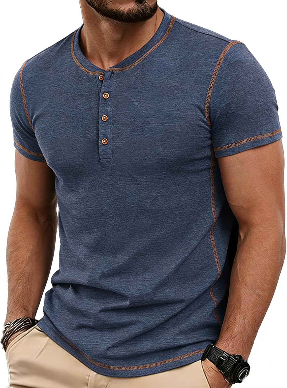 PEGENO Men's Henley Shirts Short Sleeve Casual Cotton T-Shirts Summer Button T Shirts