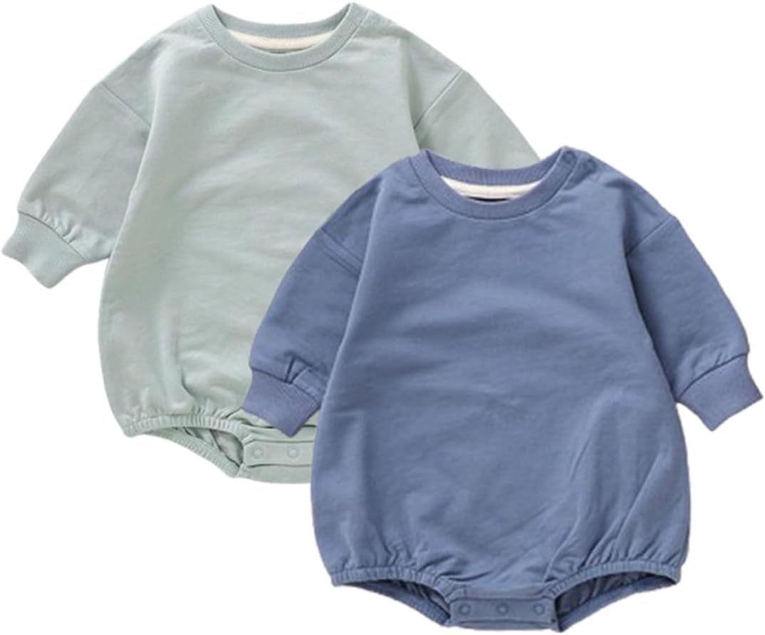 Baby Boy Bubble Romper Organic Cotton Solid Long Sleeve Oversized Sweatshirt Romper Newborn Fall Winter Clothes