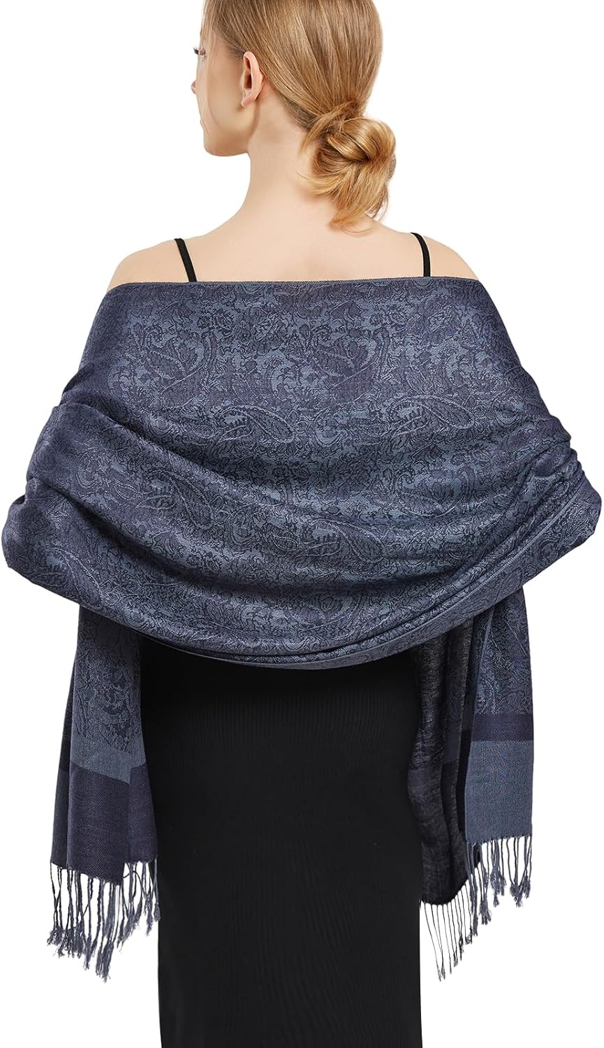 vimate Silky Paisley Pashmina Shawl Scarf-Women's Soft Double-side Jacquard Pashminas Wrap for Evening Dress Travel Shawl