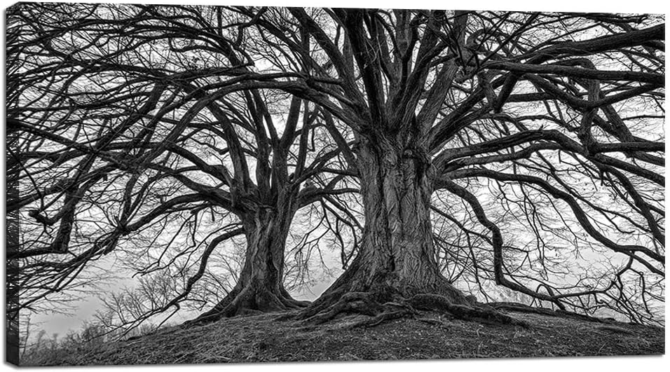 Visual Art Decor Large Black and White Trees Canvas Wall Art Winter Oak Trees Branches Picture Nature Scenery Giclee Prints Framed and Stretched Premium Artwork for Home Living Room Bedroom