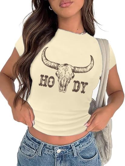 Cowgirl Outfits for Women Crop Tops for Teen Girl Y2k Clothes Cowboy Country Concert Graphic Tee Tops