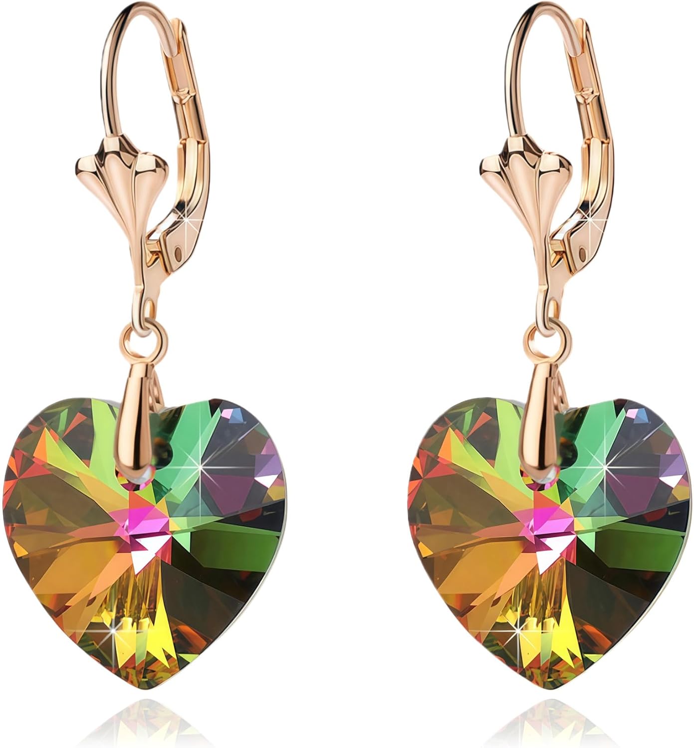 Austrian Crystal Heart Drop Leverback Earrings for Women Fashion Dangle Earring 14K Rose Gold Plated Hypoallergenic Jewelry