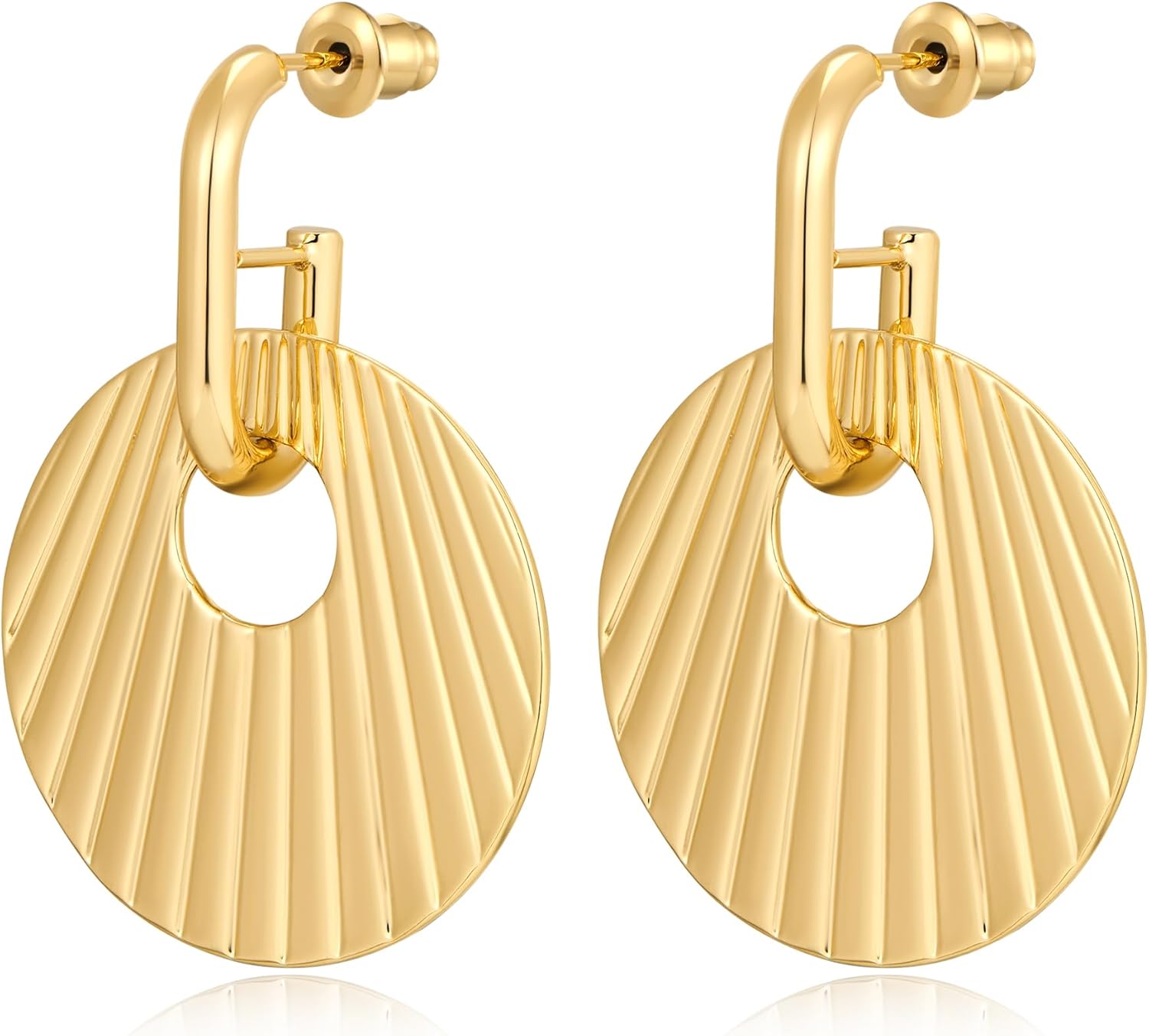Gold Earrings for Women Stripe Dangle Gold Plated Earrings Geometric Fashion Statement Jewelry Gift for Her