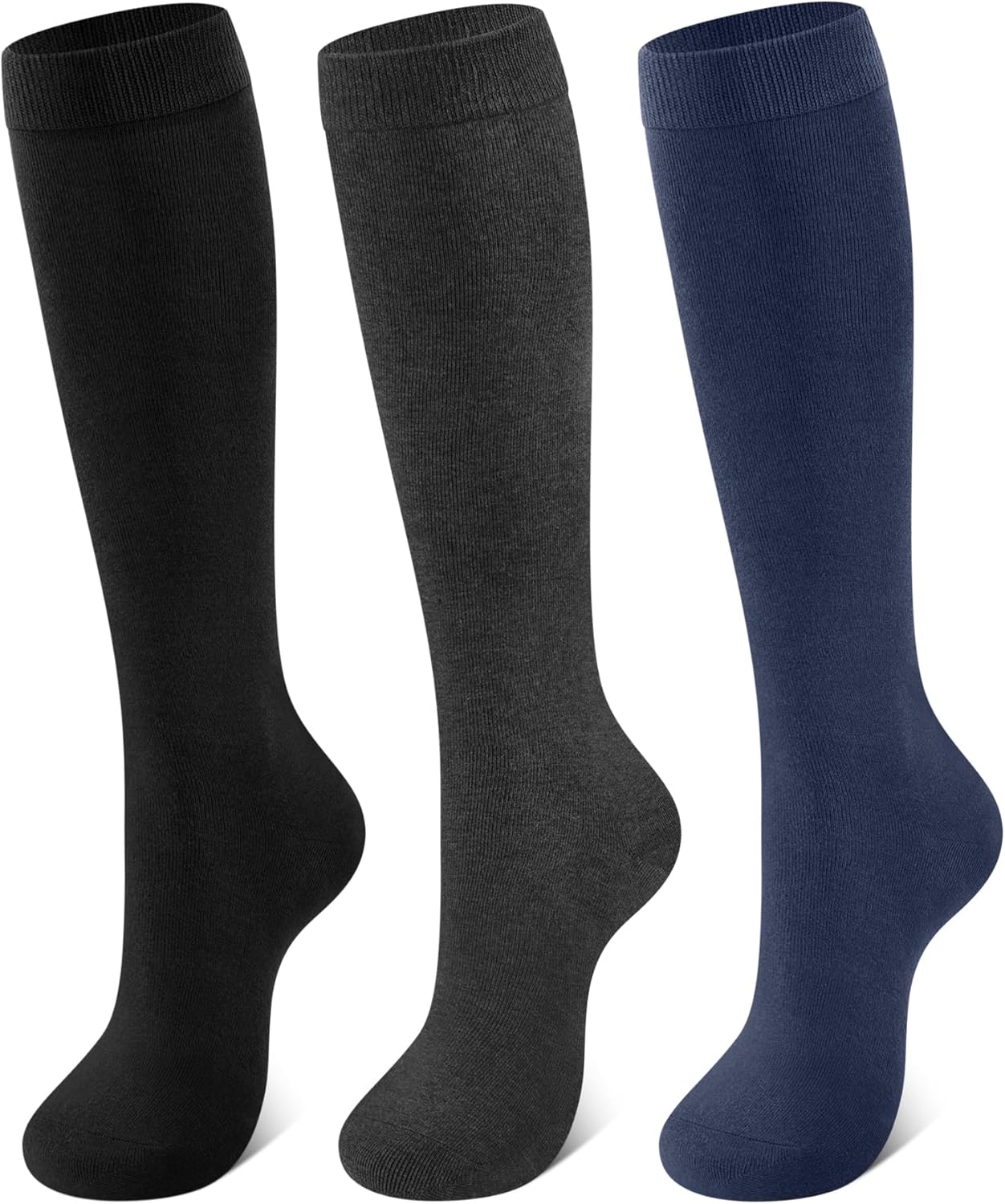 CLOSEMATE Womens Soft Knee High Long Dress Socks Combed Cotton and Comfortable Elastic Cuff 3 Pairs