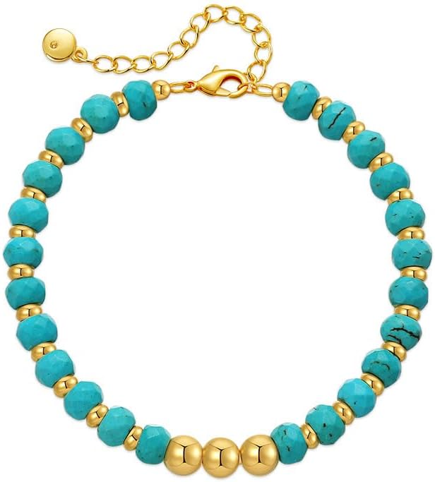 Gold Round Turquoise Beaded Bracelets18K Gold Plated Handmade Cute Bracelet for Women