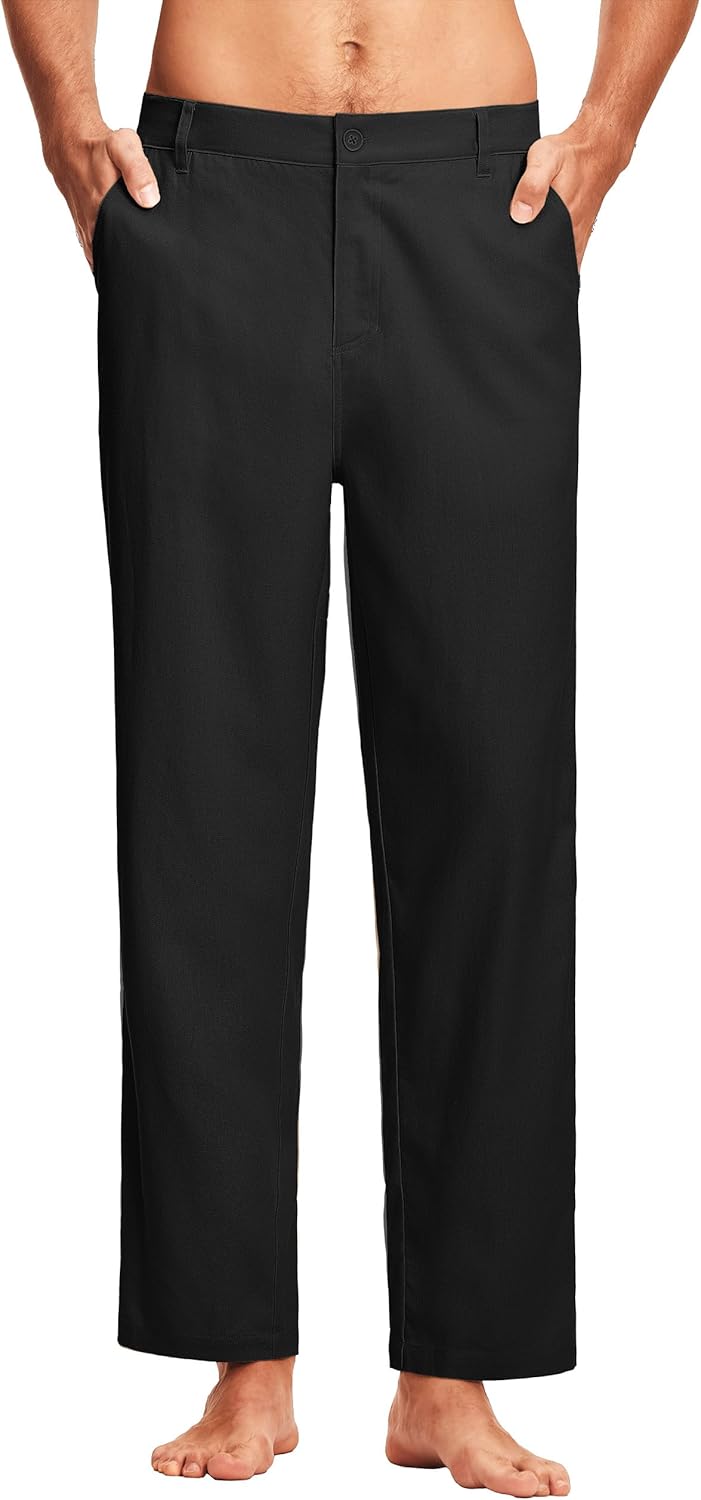 30" Men's Linen Pants Dressy Casual Work Golf Cotton Linen Trousers for Men Flat Front with Pockets Belt Loop