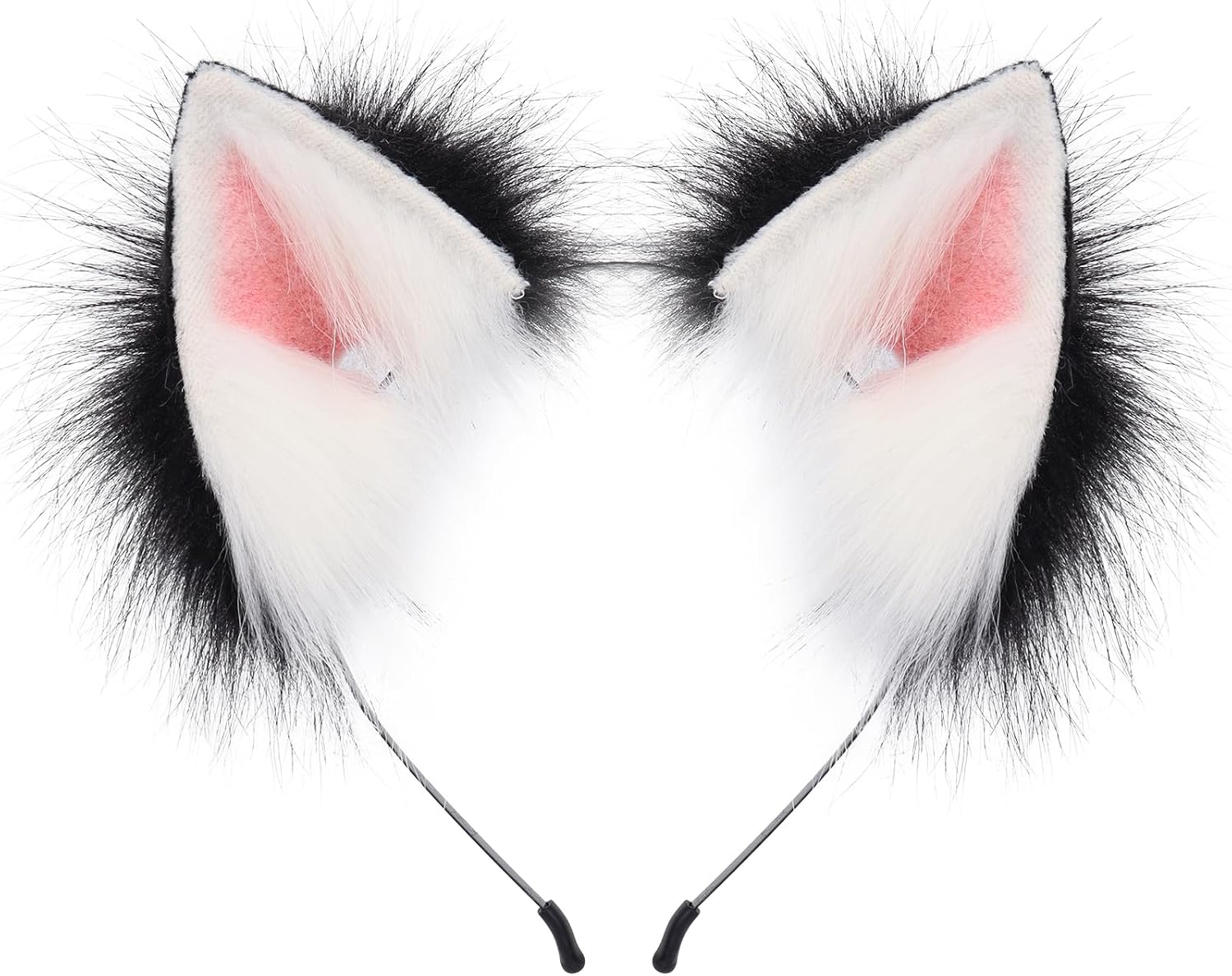 HAOAN Handmade Faux Fur Animal Cat Ears Headband Furry Fox Wolf Hairhoop Headwear Costume Accessory