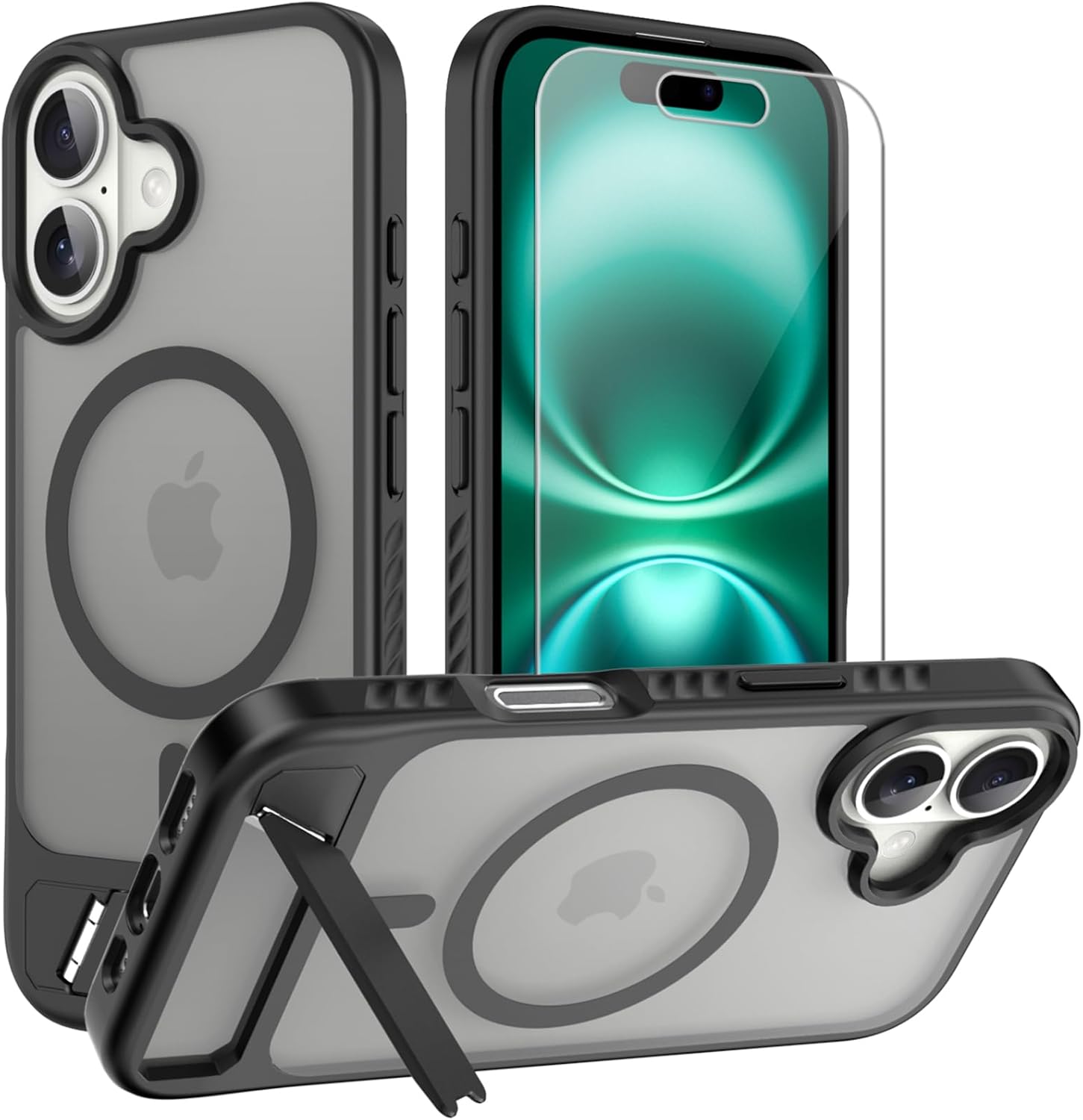 ![for iPhone 16 case: [fit for Magsafe] Strong Magnetic & Invisible Stand, Military-Grade Drop Protection with Screen Protector, Adjustable Kickstand Slim Frosted Translucent Matte Phone Case, Black - Image 2](https://m.media-amazon.com/images/I/71PSCsEdU0L._AC_SL1500_.jpg)