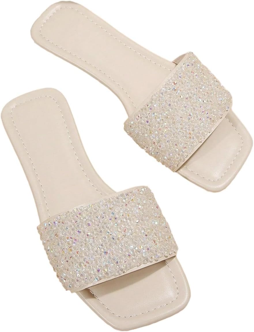 GORGLITTER Women's Sparkly Jeweled Flat Sandals Dressy Open Toe Glitter Shiny Slippers Slip-on Shoes