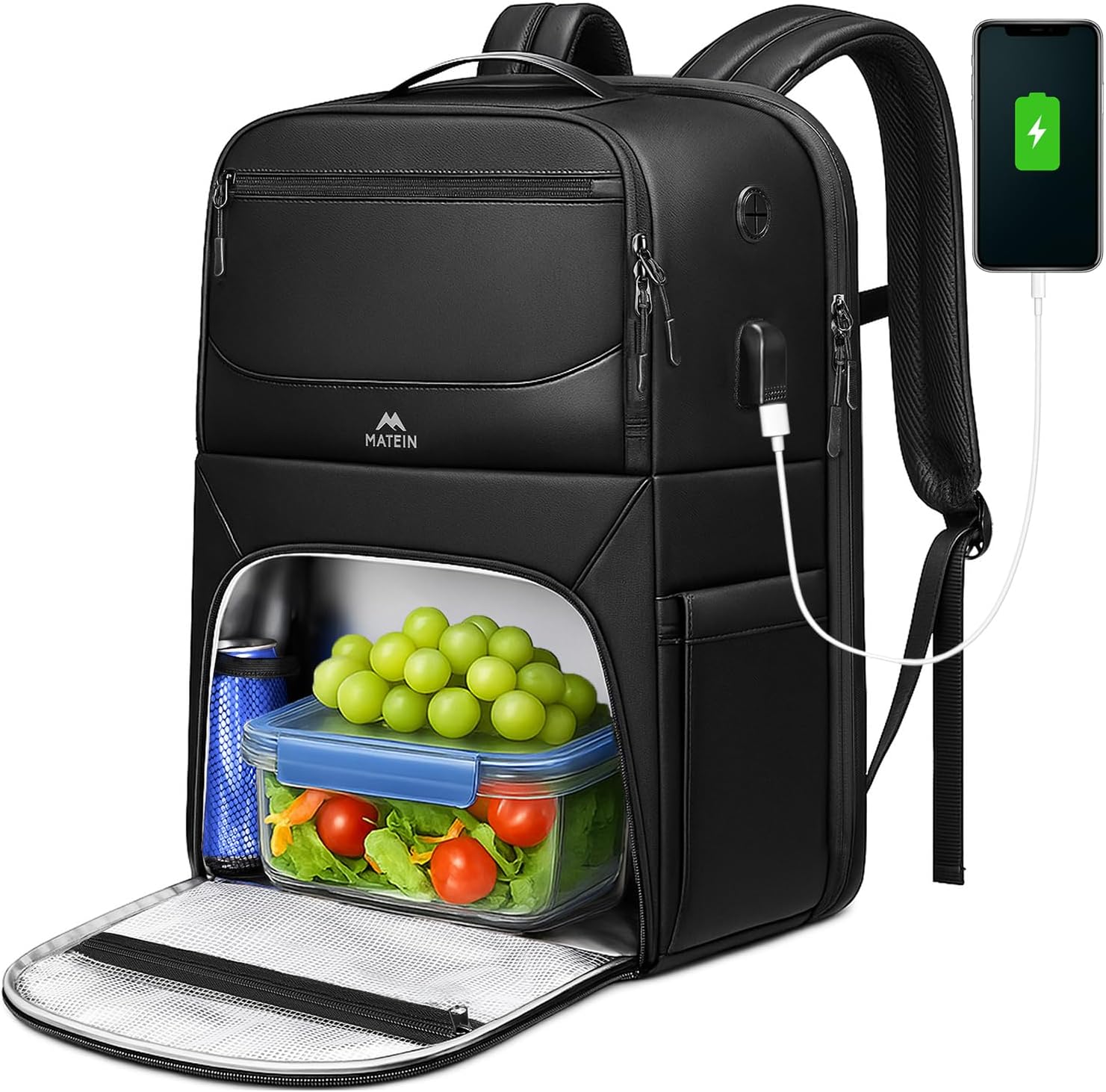 MATEIN Lunch Backpack for Men, Waterproof PU-coated Work Backpack with Lunch Compartment, Large 17 Inch Laptop Back Pack Lunchbox with USB Port, Insulated Cooler Bag for Office Commute, Gifts for Work