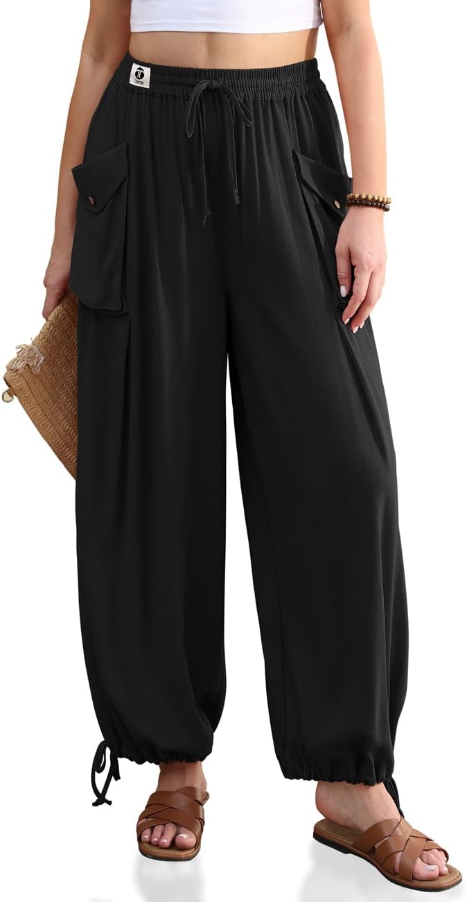 TARSE Womens Linen Wide Leg Pants Casual Loose Drawstring Palazzo Trousers Beach Boho Summer Travel Pants
