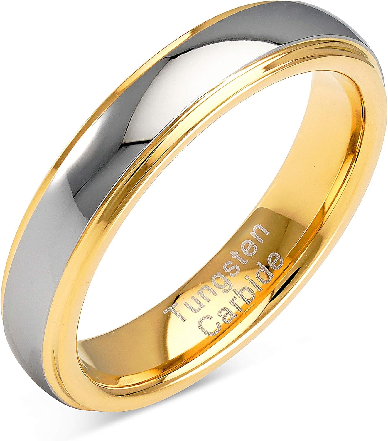 100S JEWELRY 4mm Personalized Engraved Tungsten Rings for Men Women Wedding Band Two Tones Gold Silver Engagement Size 4-13
