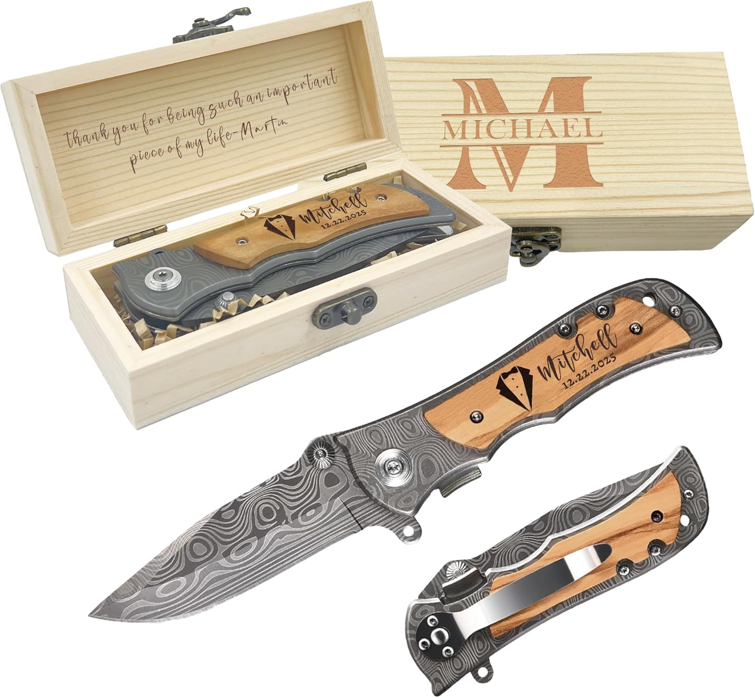 - A Perfect Personalized Gift for Every Occasion: Perfect for the special man in your life—whether it’s your dad, grandpa, boyfriend, or husband, best friend, boss, coworker, son.... The combination of premium craftsmanship and personalized engraving makes this pocket knife a truly unique gift that he'll treasure for years to come.