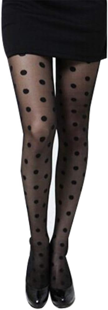 Youngy Women Pantyhose, Women Sweet Girls Acrylic Fiber Thin Pantyhose Sexy Perspective Large Polka Dot Pattern Printed Footed Tights Slim Stockings Jacquard Lingerie - Black