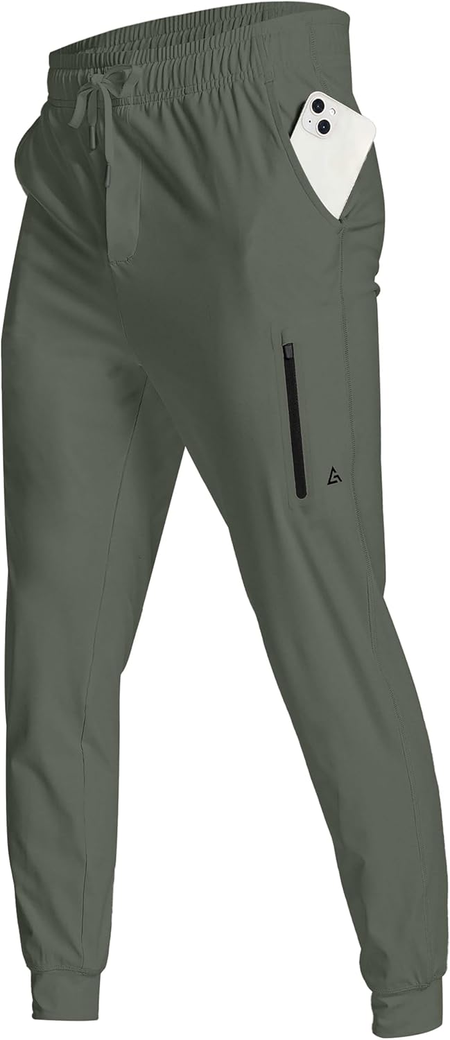 Men's Athletic Joggers with Zipper Pockets Stretch Track Pants Workout Running Gym Golf Sweatpants for Men