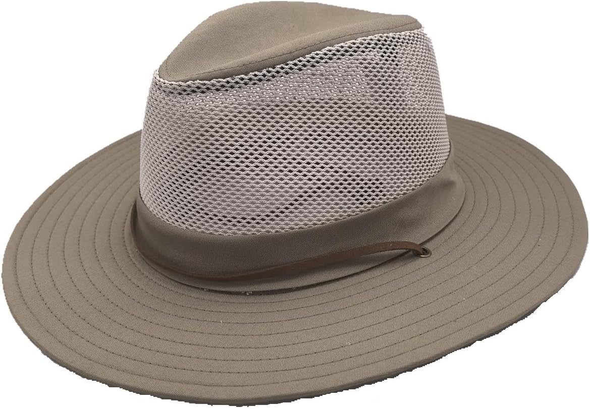 Men's Flat Wide Brim Mesh Safari Outdoor Hat Panama Hat Travel Fishing Hiking with Windproof