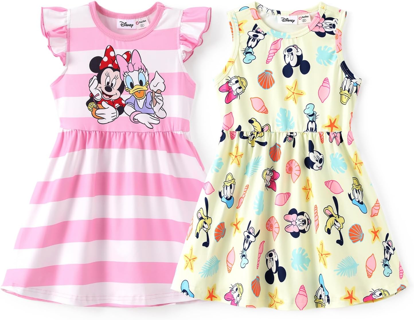 Disney Frozen Elsa Princess Minnie Mouse Stitch Toddler Girl Dresses 2 Pack Long Ruffle Sleeve Costume Set Outfit 2-13 Years