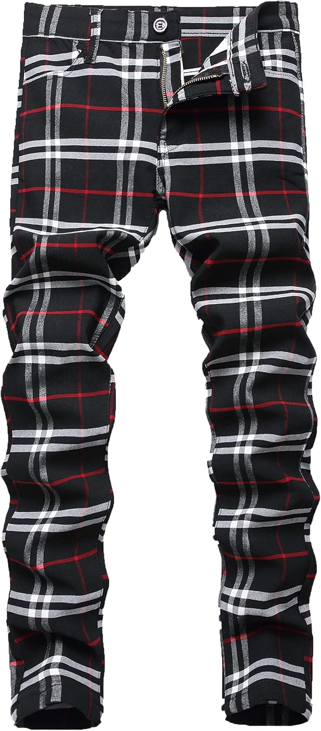 NOVOCCT Plaid Pants for Men - Skinny Mens Dress Pants - Stretch Slim Fit Business Casual Dress Chinos for Men