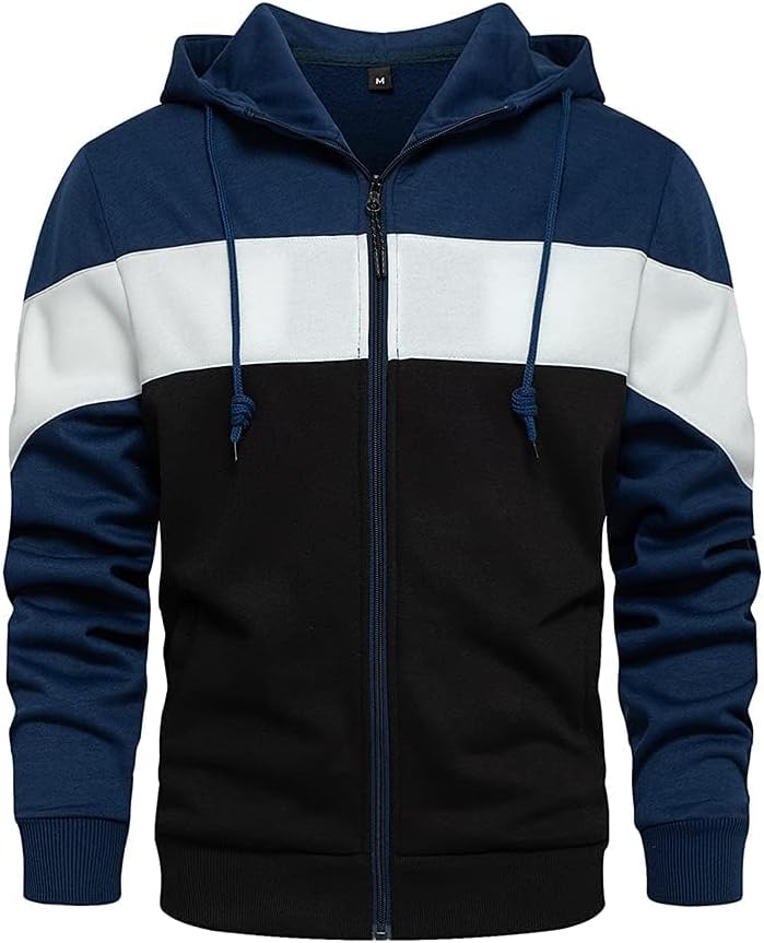 LBL Mens Slim Fit Long Sleeve Zip-up Fleece Hoodie Color Block Sweatshirt with Kangaroo Pocket