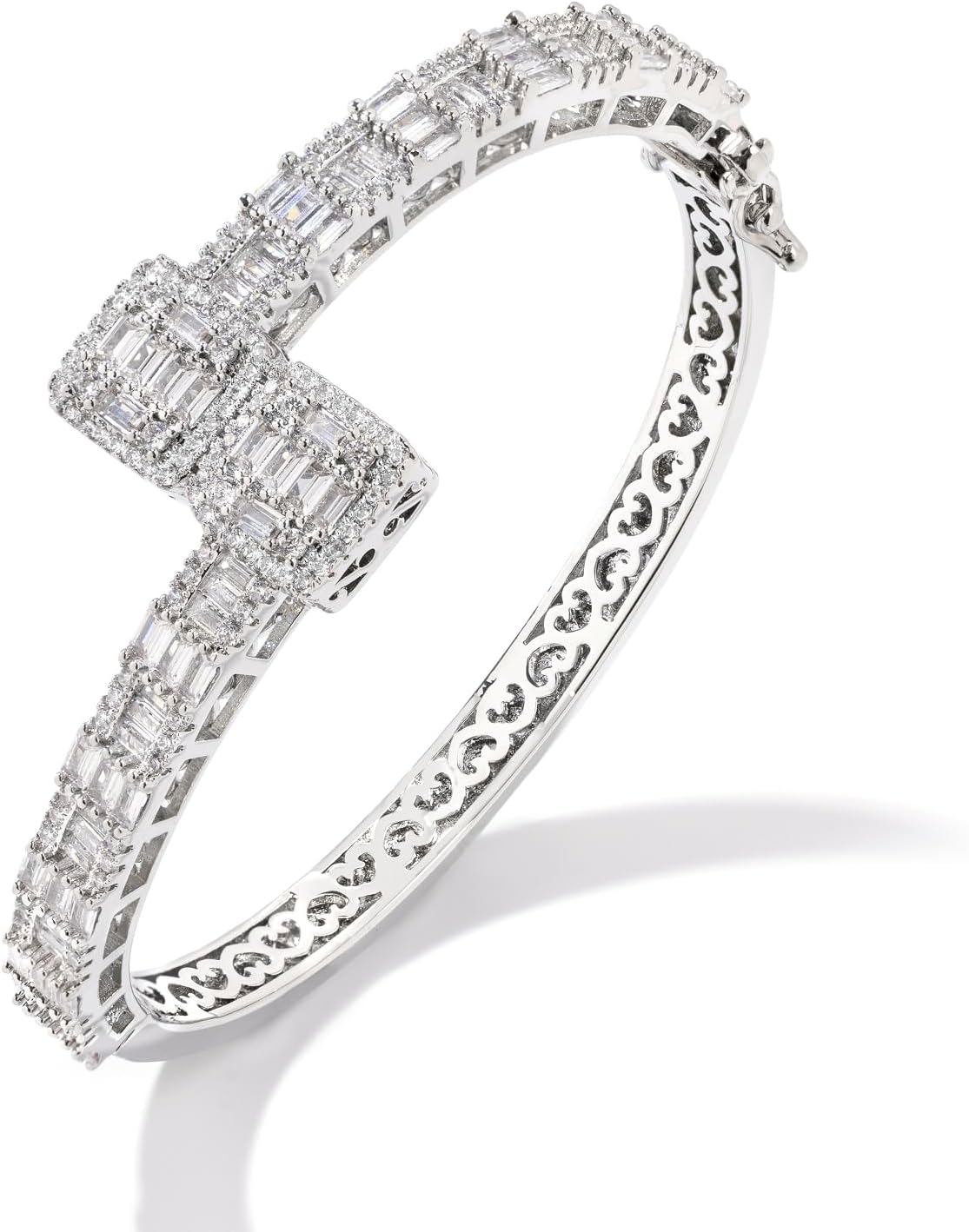 Lulu Mel Iced Out Baguette Diamond Bracelet Jewelry for Women, Hip Hop Mens 14k Gold Silver Plated Cubic Zirconia Bangle Bracelet, Men Heart Cuff Bracelet With Jewelry Box
