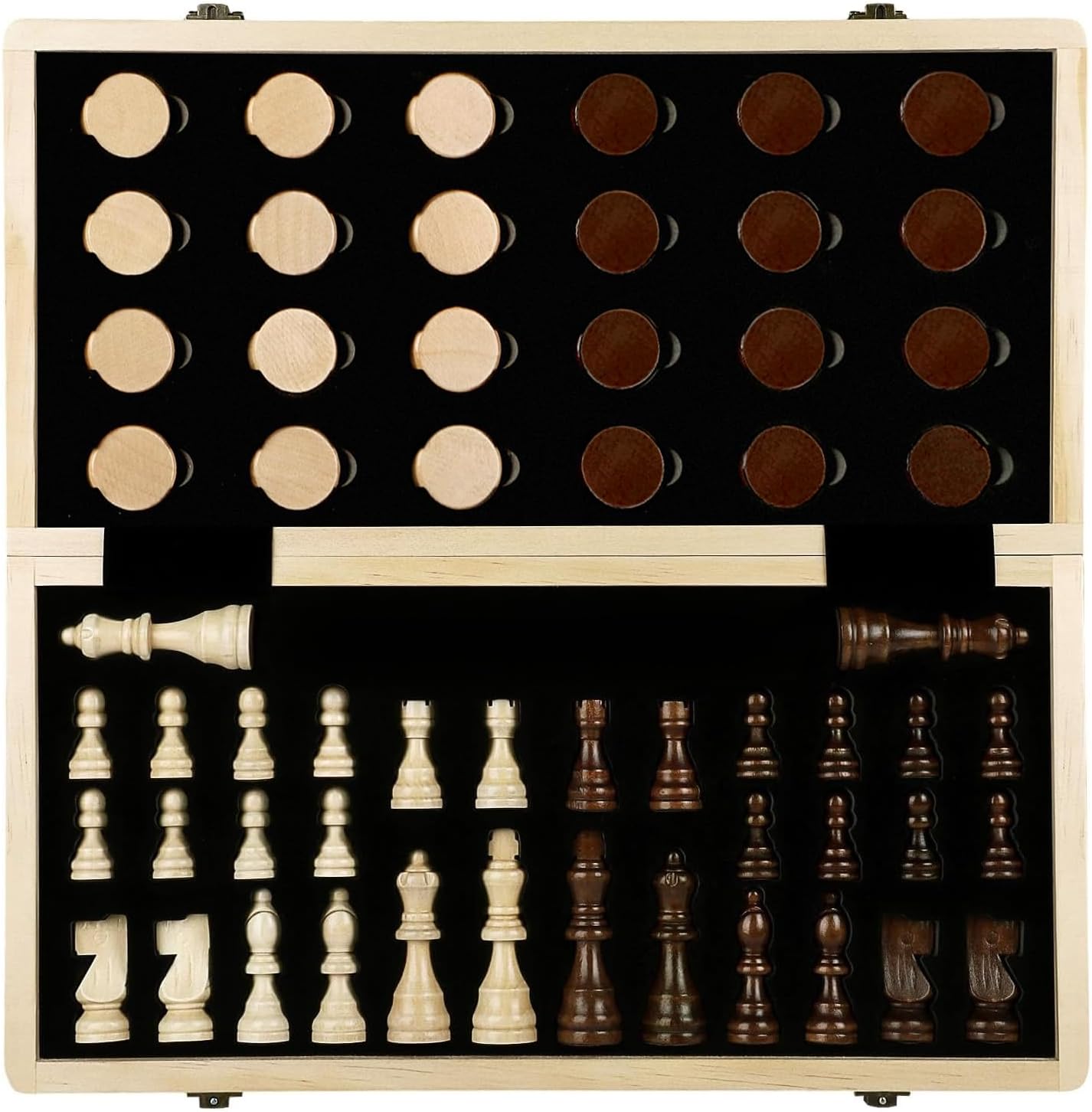 - CHESS GAME SET – If you want to enjoy funny and relaxing chess game everywhere you go even on a train or a driving car, you would definitely love this folding wooden chess. The high-quality chess board with storage can keep every chess pieces in place securely, allowing for easy chess game on.