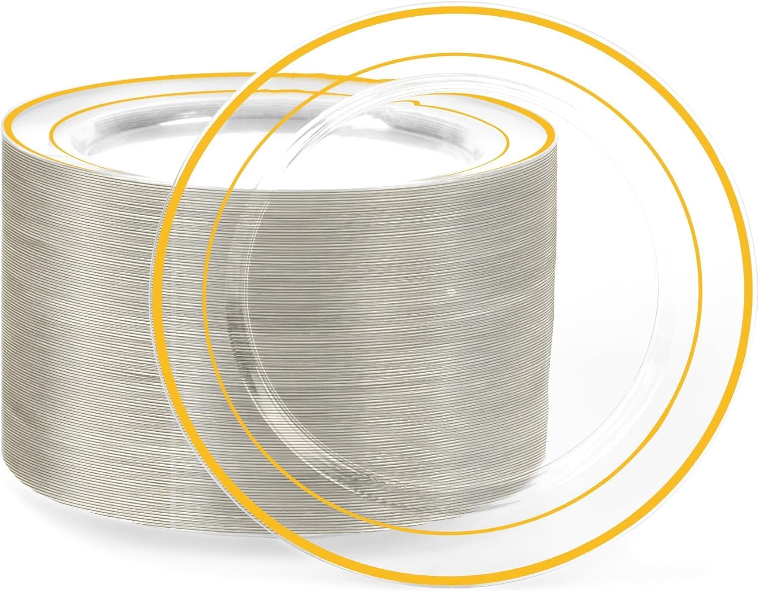 - HEALTHY QUALITY: Clear and gold plastic plates are made of 100% food grade plastic, BPA free and free from toxic and harmful substances. Reusable, sturdy and healthy, suitable for daily and party use, so that you can better entertain your guests.