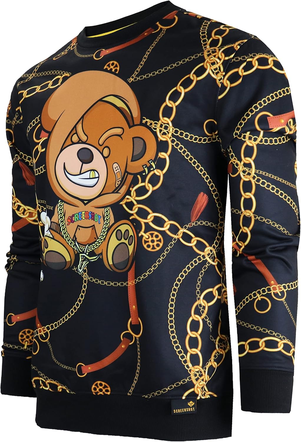 SCREENSHOT Mens Urban NYC Graffiti Hip Hop Fleece Pullover Active Fashion Crew Neck Sweatshirt Top
