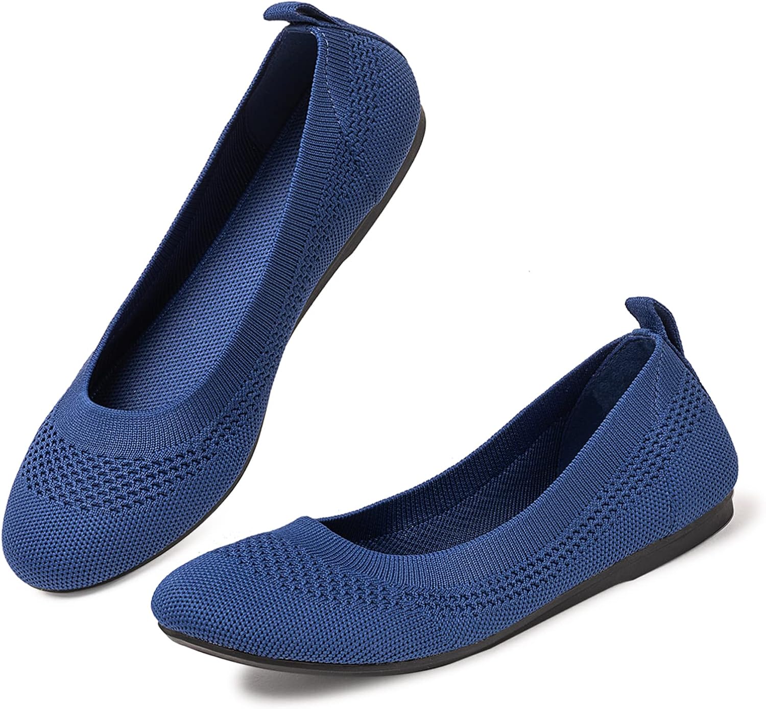 BEJINASH Ballet Flats for Women Soft Slip On Flat Shoes Knit Round Toe Work Flat Mesh Woman Walking Shoes Comfortable Casual
