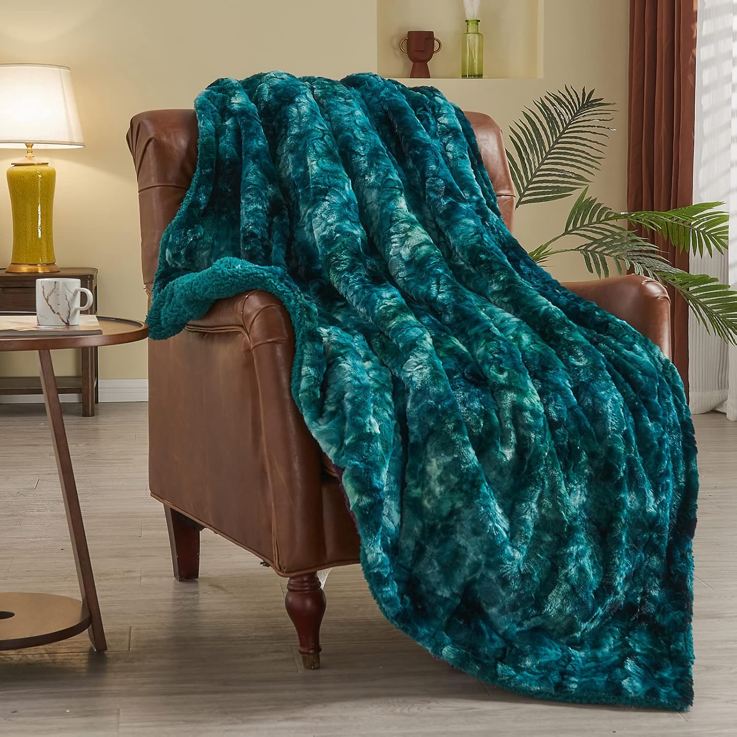 NEWCOSPLAY Super Soft Faux Fur Throw Blanket for Couch Tie-dye Dark Teal Sherpa Fuzzy Plush Warm Blanket for Sofa Bed (Tie-dye Dark Teal, Throw(40"x50"))