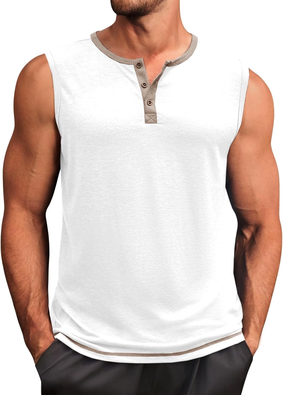 Runcati Men's Workout Tank Tops Sleeveless Gym Muscle Henley Shirt Casual Basic Summer Beach Tops