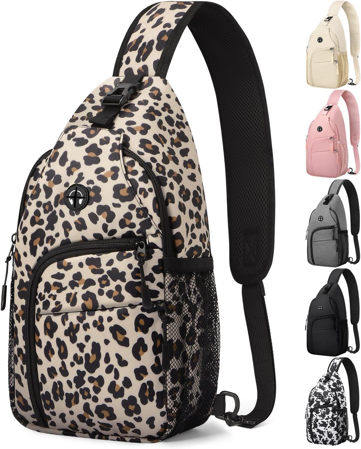 Crossbody Bags for Women Man Waterproof Sling Bag Backpack Trendy Casual Cross Body Bag with Convertible Shoulder Strap Chest Bag for Camping Hiking Travel Essentials (Leopard, Large )