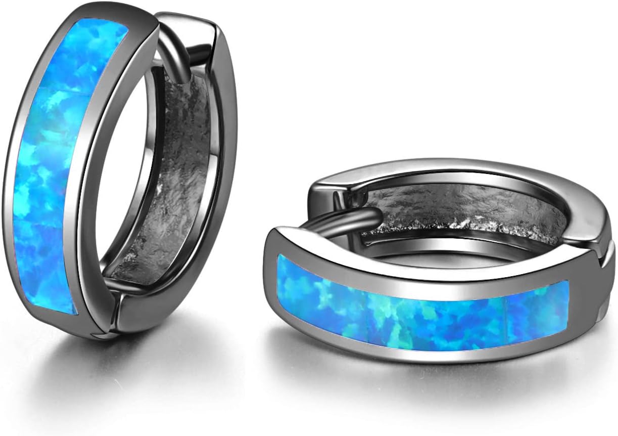 CiNily Huggie Earrings Opal Hinged Hoop Earrings Gold Plated Hypoallergenic Small Hoop Earrings for Women Teen Girls Men Sensitive Ears