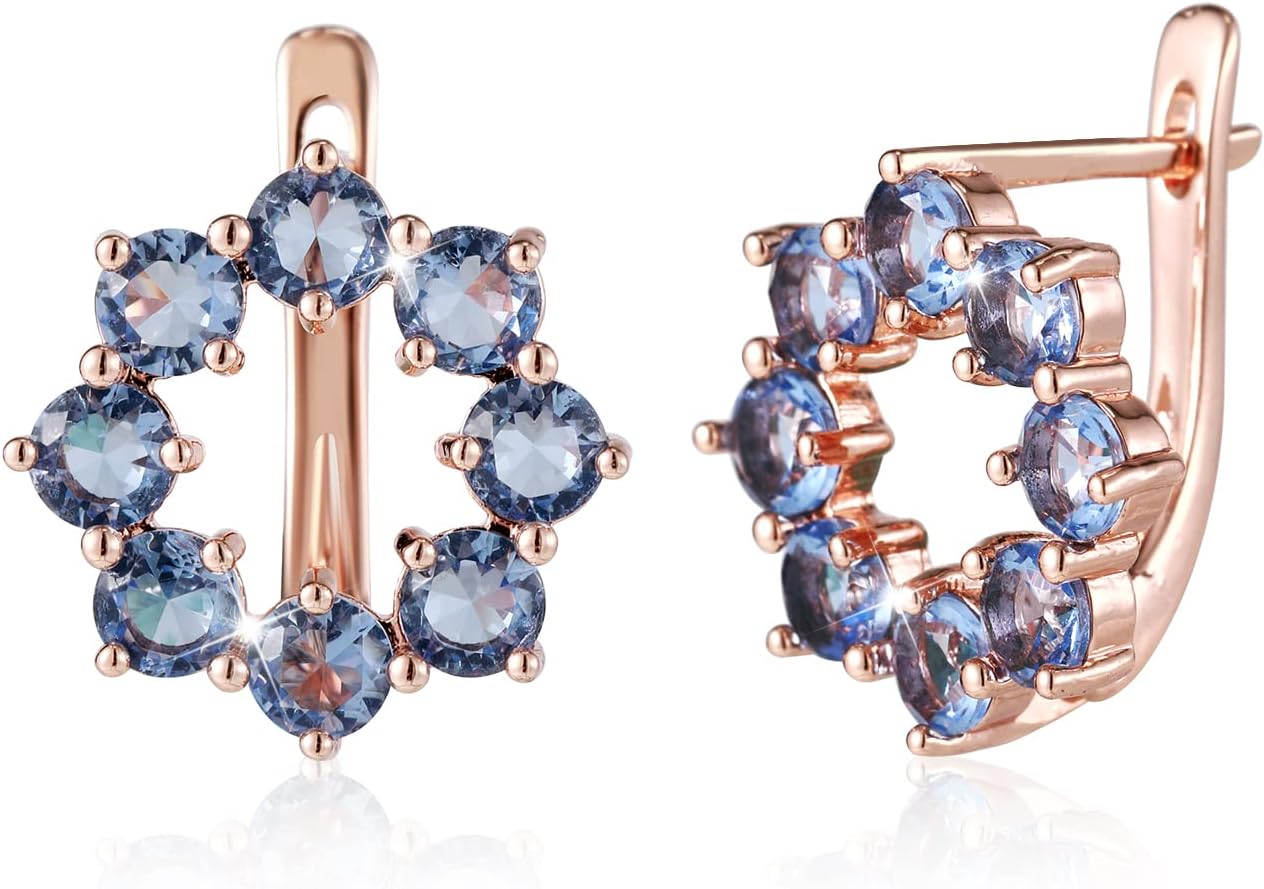 Richapex Sapphire Earrings for women, 18K Gold Plated Crystal Flower Earrings | Small Hoop Earring |Gold Earring for Women
