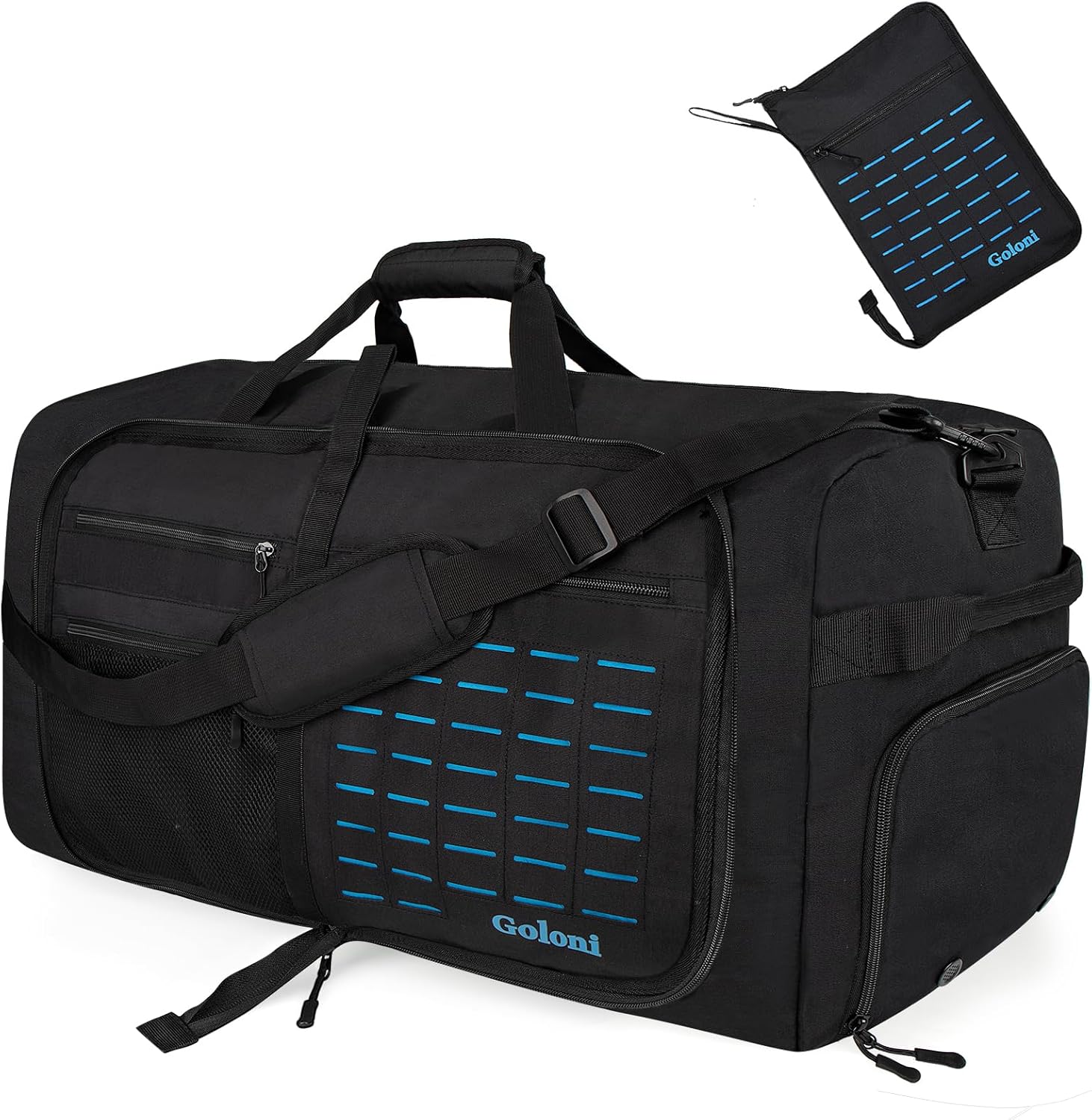 - Easy to Carry:This 80L waterproof travel duffel bag comes with an adjustable, detachable padded shoulder strap for comfortable carrying. When the large duffle bag is too heavy for one person, side handles allow two people to carry it together. Its rear pocket is designed to slide over the handle of a standard suitcase, making this travel bag easy to tote along during trips
