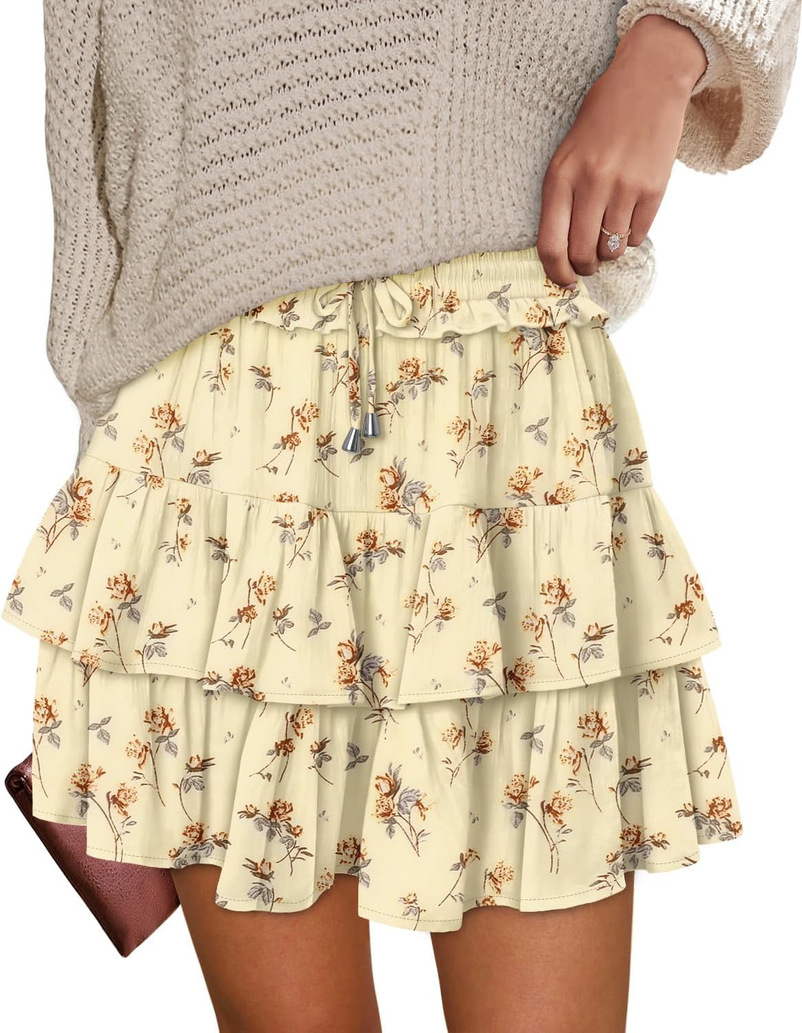 onlypuff Flowy Shorts for Women Ruffle Skorts Tiered Teen Girls Country Concert Outfits Golf Tennis Skort Under Sweater Skirt