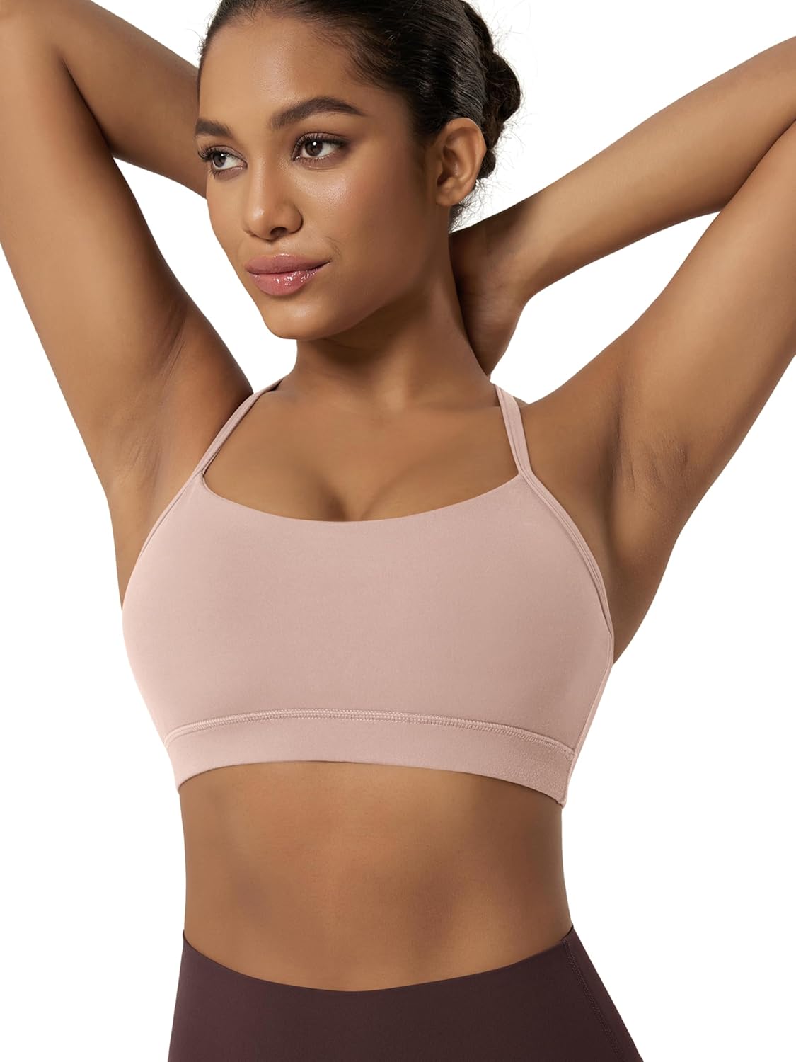 ODODOS Cloud Feeling Y Racerback Sports Bra for Women Wirefree Padded Strappy Yoga Bra
