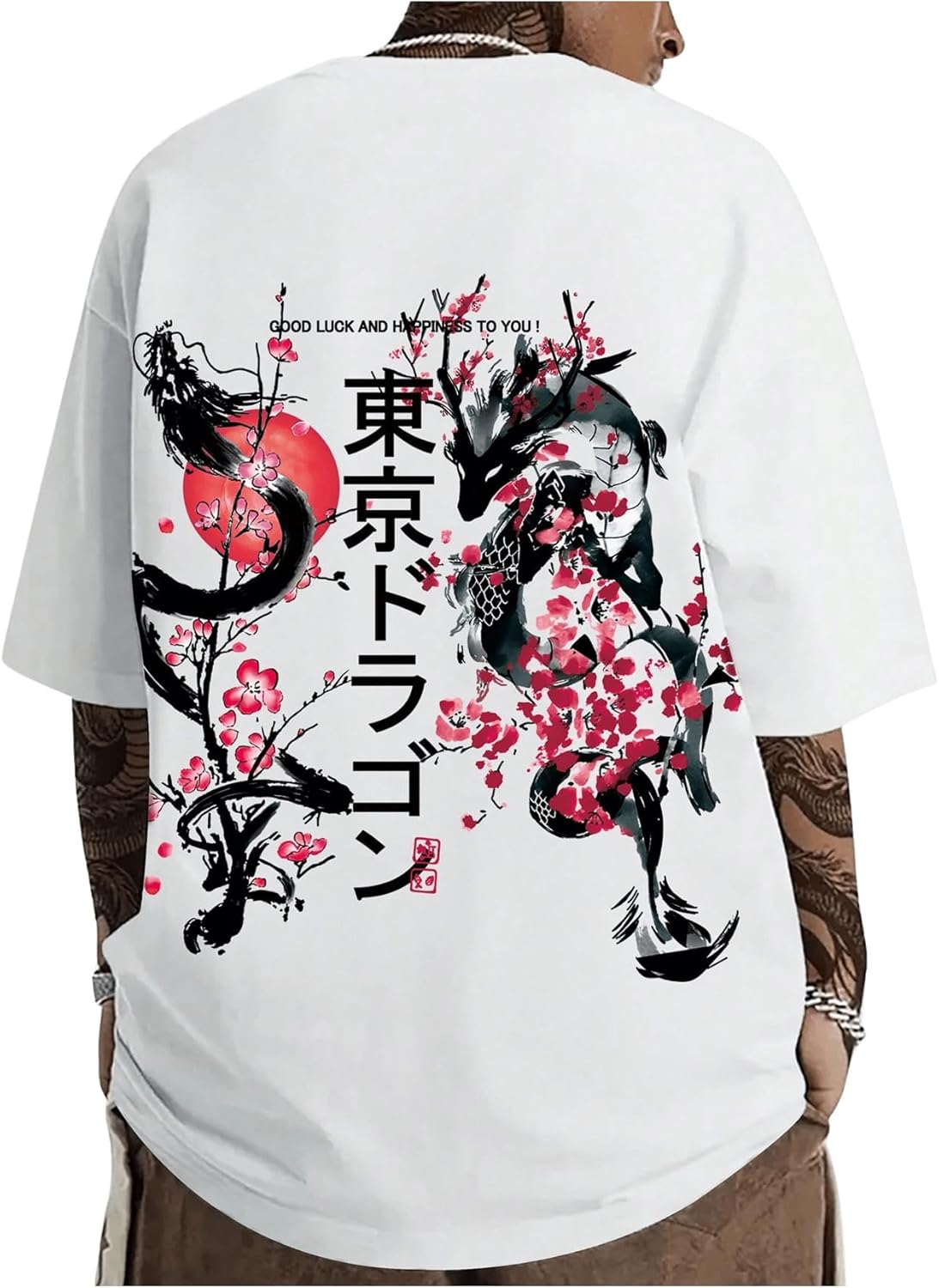 GORGLITTER Men's Japanese Letter Graphic Tee Top Oversized Short Sleeve Casual Aesthetic Print T-Shirt