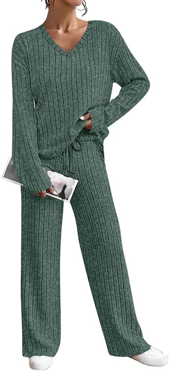 TIYOMI Ladies Plus Size Green 4X Sweater Outfits Long Sleeve Pullover Knitting Suits Winter Sweatersuits Casual 2 Piece Lounge Sets 4XL 24W 26W