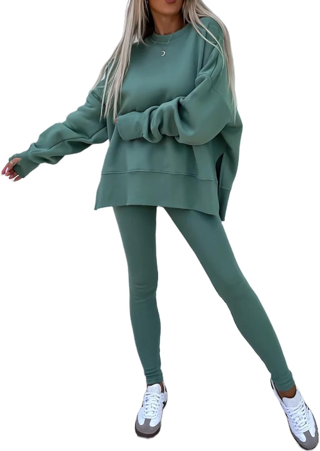 Adogirl Sweatsuit for Women Casual Two Piece Outfits Oversized Pullover Sweatshirts with Thumb Hole Slit Ribbed Pants