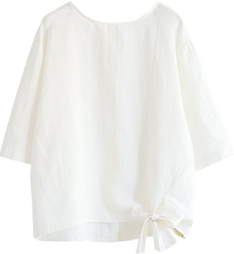 Minibee Women's Cotton Linen Blouse Cute Tunics Tops Shirt