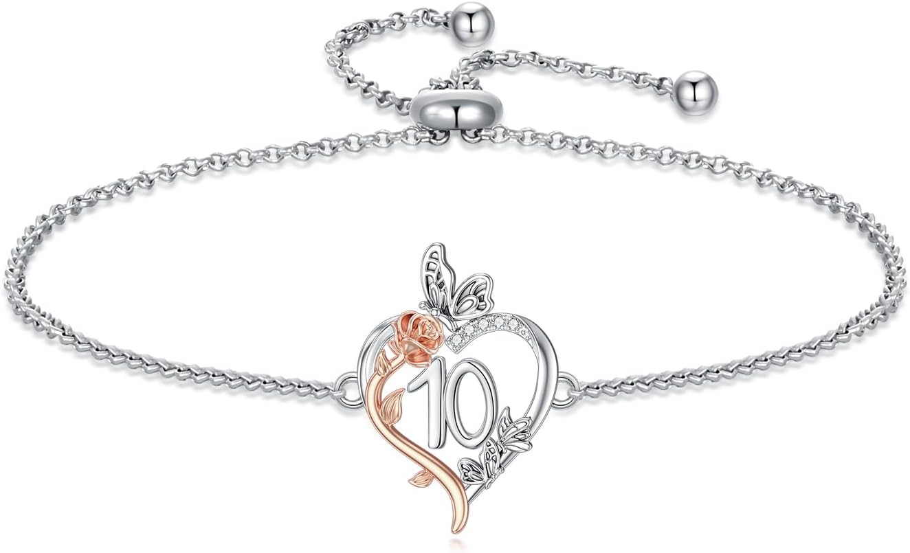 TOUPOP Gifts for Her Rose Heart Bracelet 925 Sterling Silver Heart Butterfly Bracelet Sweet Year Old Jewelry Anniversary Birthday Christmas Gifts Women Girlfriend Wife Mom Grandma
