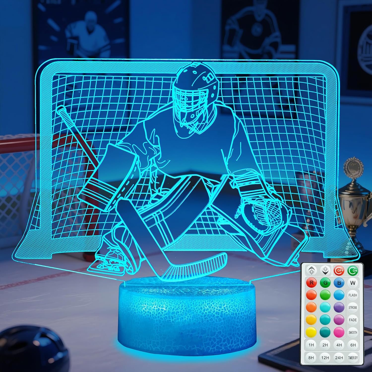 Hockey Night Light, Hockey Goalie Gifts, 3D Illusion Lamp with Remote Control, 16 Colors Changing, RGB Flashing Mode, Timer and Dimmable, Hockey Gifts for Boys Christmas Decor