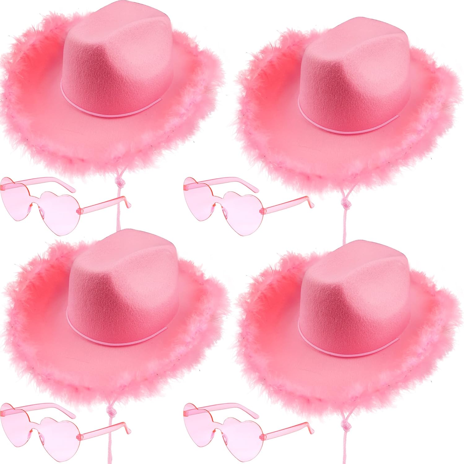 4 Pieces Cowboy Hat with 4 Pairs Heart Shaped Sunglasses Cowgirl Hats for Girls Women Halloween Costume Party