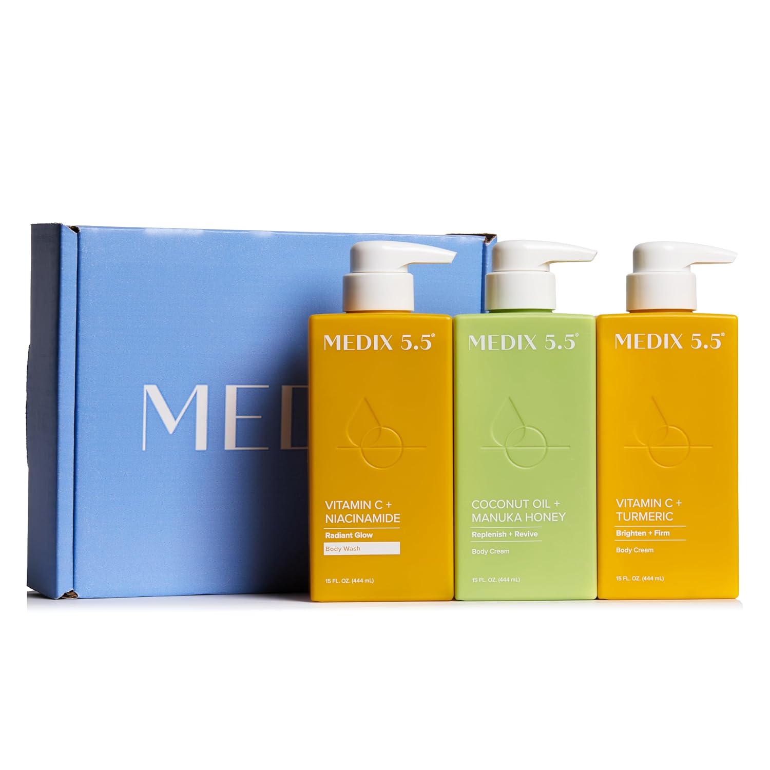 - DERMATOLOGIST-TESTED – Our Medix 5.5 body cream moisturizers & body wash cleansers are designed with your daily skin care routine in mind. Immediately apply Medix 5.5 body creams combined with optional body boosters after a relaxing hot shower or bath to allow powerful active ingredients within formula to absorb deeply into the skin and for the delicious scents to invigorate your senses. Our luxuriously rich creams melt into the skin absorbing quickly, leaving your skin nourished & delectably silky smooth.