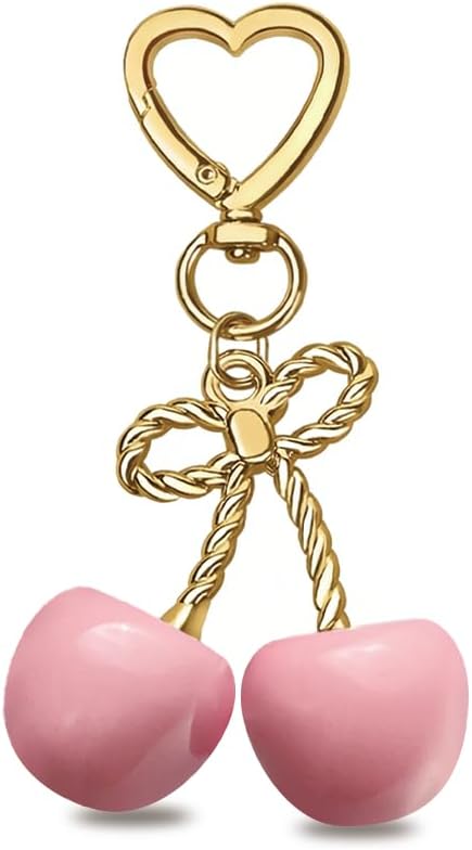 Cute Cherry Keychain Gold Bow Keychains Womens Chic Bag Charms Handbags Purse Car Keyring Fashion Accessories