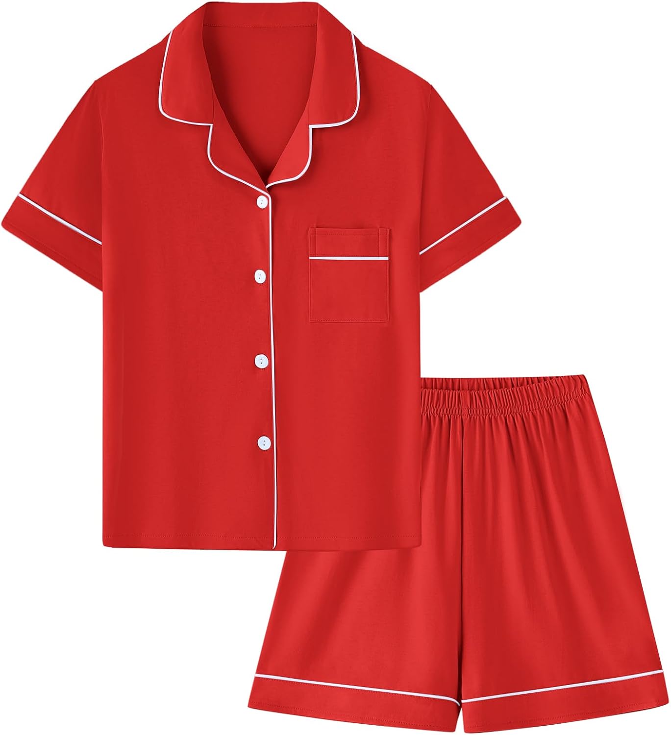Umeyda Boys 100% Cotton Pajamas Set Kids Soft Short Sleeve Sleepwear 2 Pcs Button-Up Comfy Pjs Set for Ages 4-12