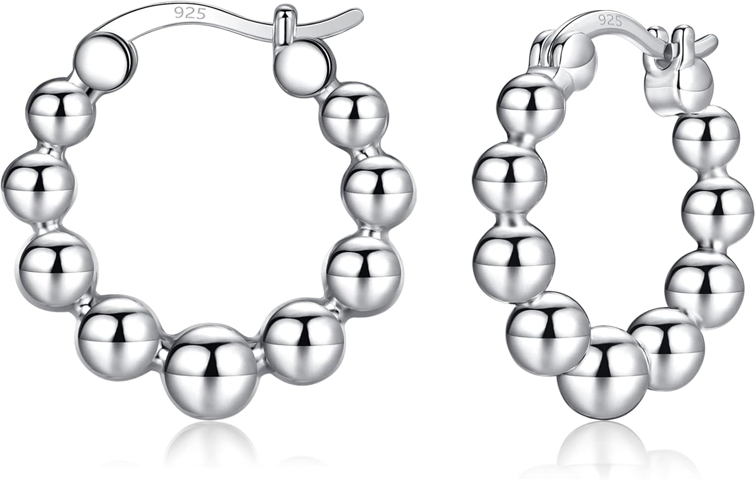 Nupdot Gold Chunky Hoop Earrings for Women | Thick 925 Sterling Silver Post Beaded Ball Huggies Earrings Lightweight Hypoallergenic Hoops Jewelry Gifts, 10/12/15mm