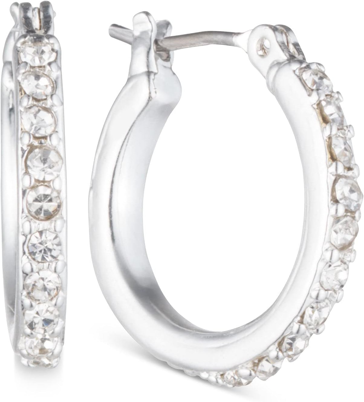 Anne Klein "Classics" Silver-Tone Click It Crystal Hoop Earrings
